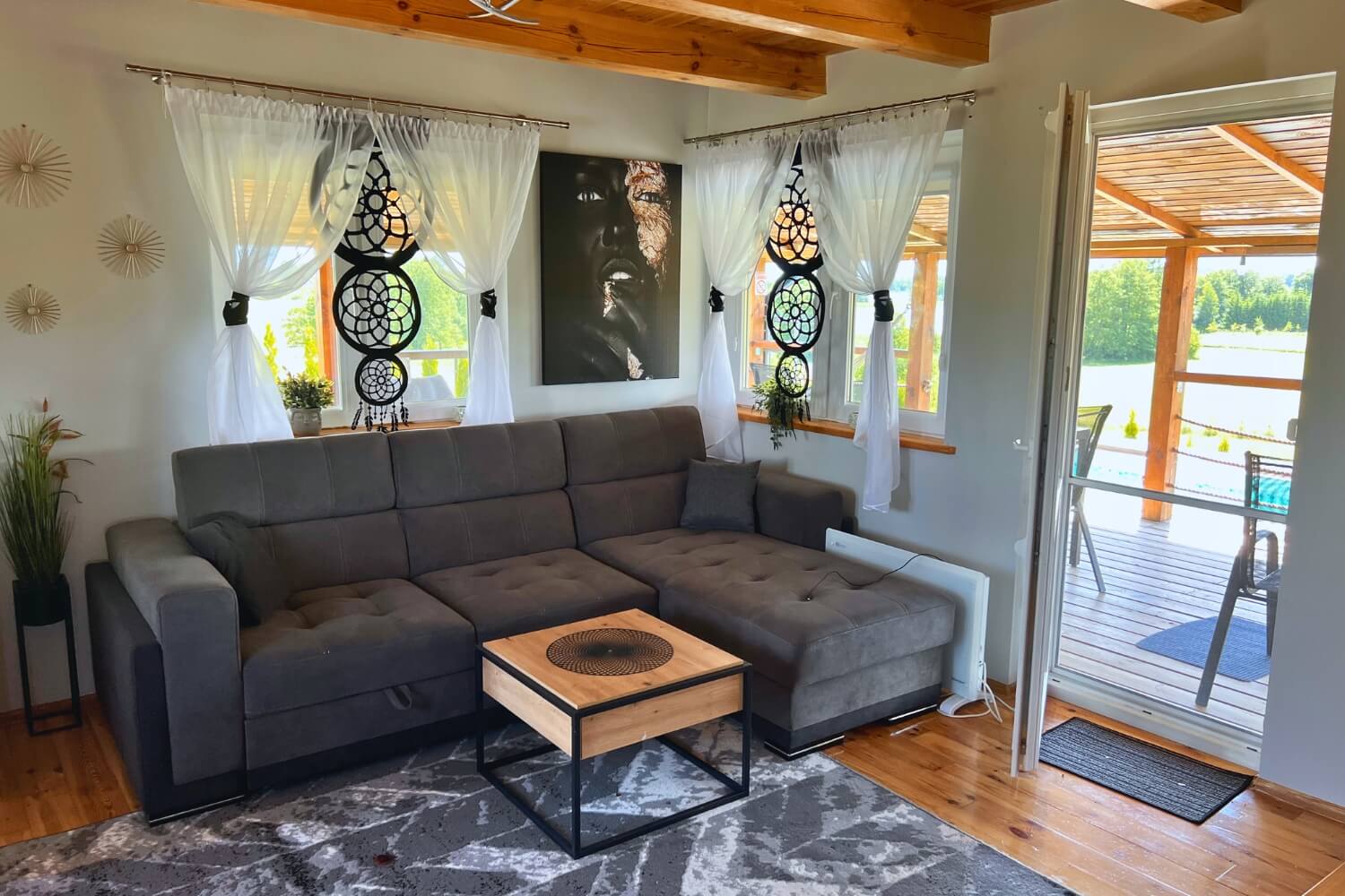 Oferujemy piękny domek na Mazurach w miejscowości Giże. Do Państwa dyspozycji pozostaje 6 miejsc noclegowych. Dom (parter + piętro) oraz działka są bogato wyposażone, dzięki czemu każdy znajdzie tu coś dla siebie. Wśród głównych atrakcji działki można wymienić basen, system Jacuzzi®, saunę, trawiaste boisko do siatkówki, czy strefę do grillowania. Wewnątrz domu znajdziemy natomiast duży telewizor, wi-fi oraz rozkładaną sofę. Serdecznie zapraszamy!