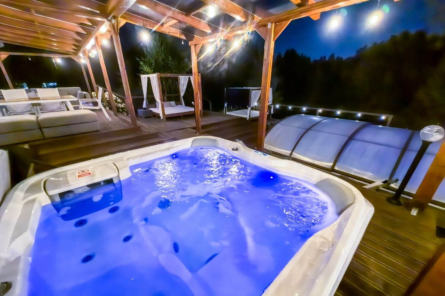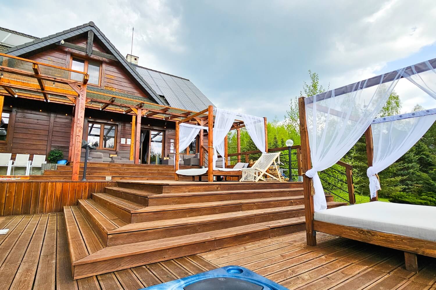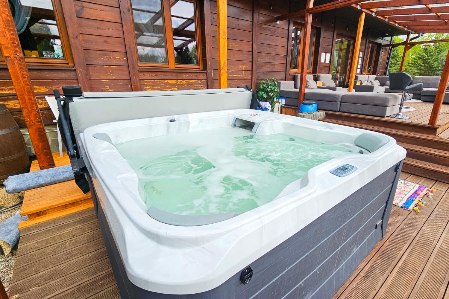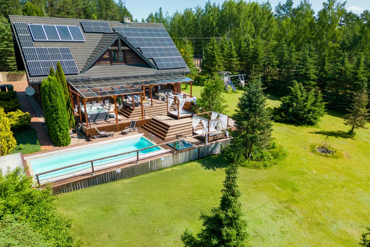 Na Gości czekają także: podgrzewany basen (w sezonie letnim), Jacuzzi®, sauna, fotel masujący, kominek, projektor 4K, PS5, stół do pokera, bilard, dart i mnóstwo innych atrakcji.